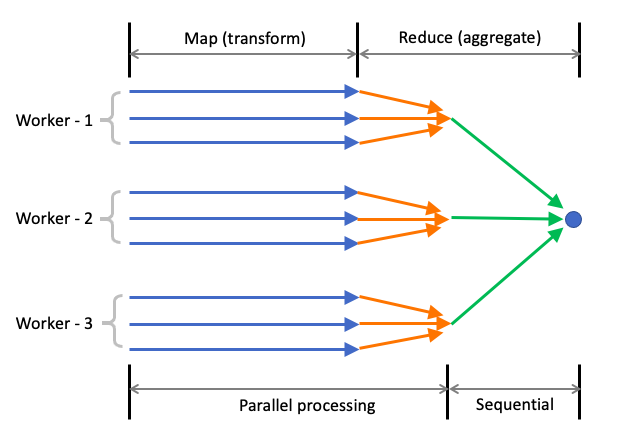 Processing of large data streams requires large processing power with parallelism, to reduce processing-time. Since vertical scalability hits a wall with limits in physics, we need to go for node clusters for more processing power. That brings in the issues of data distribution among the nodes and ensuring that nodes can operate independently at full speed. The goal of Map-Reduce pattern is to allow maximum parallelism for data-processing workers. The pattern touches on the following 3 areas: