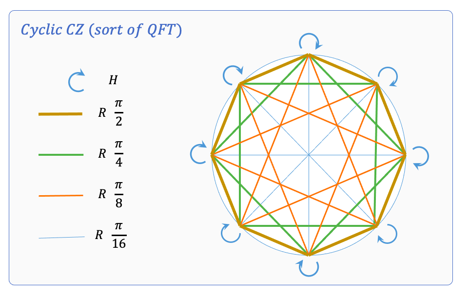 Not quite QFT (see next diagram), but this helps to understand the phase rotations across the qubits.