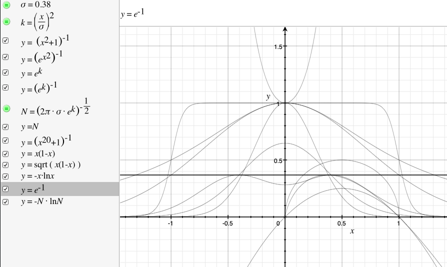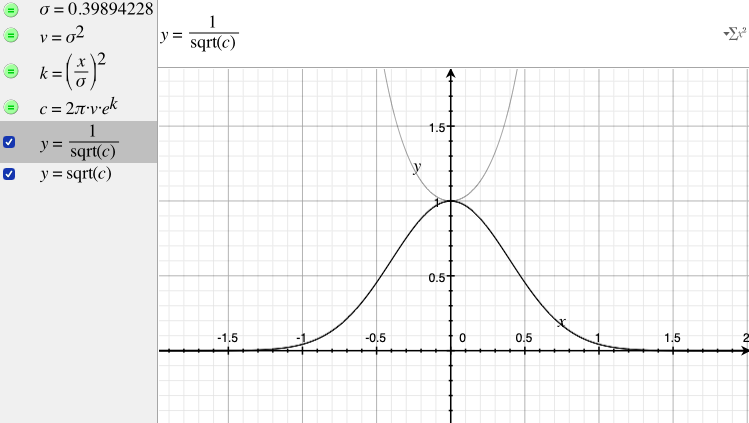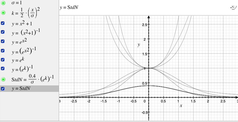 The following are further evolutions for Guassian and Standard Normal curves. I have used Desmos and Grapher (on mac) to draw these curves on this page.